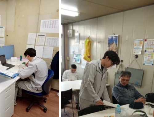 職人さんが提出したKY(危険予知)シートも確認します。 -